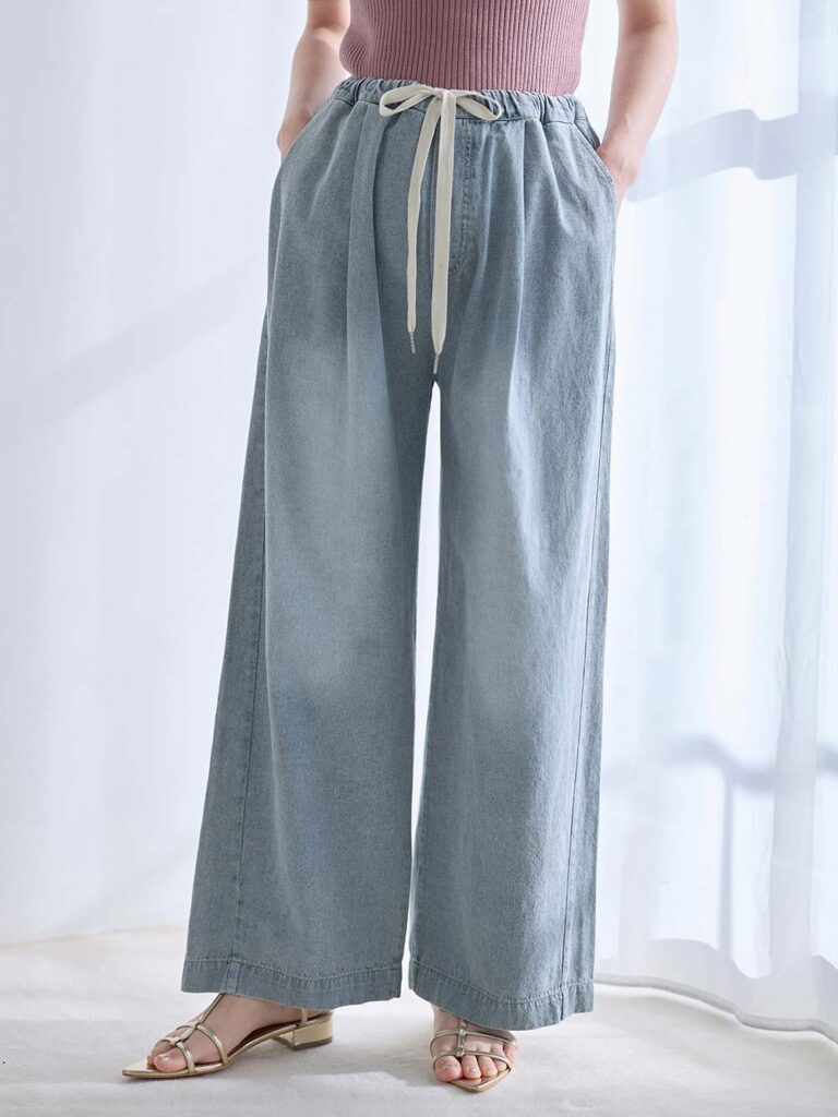 デニムシャツのような軽くて柔らかい「ライトオンスデニム」と接触冷感素材を採用。暑い季節もムレずに涼しく、快適なデニムコーデが楽しめます。